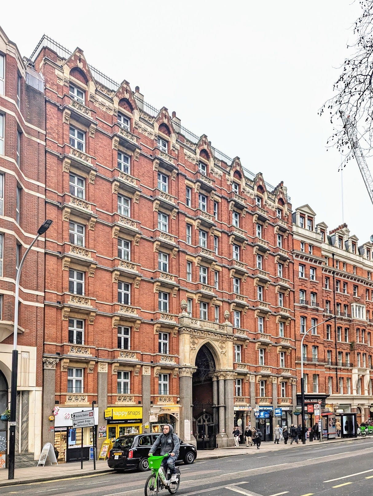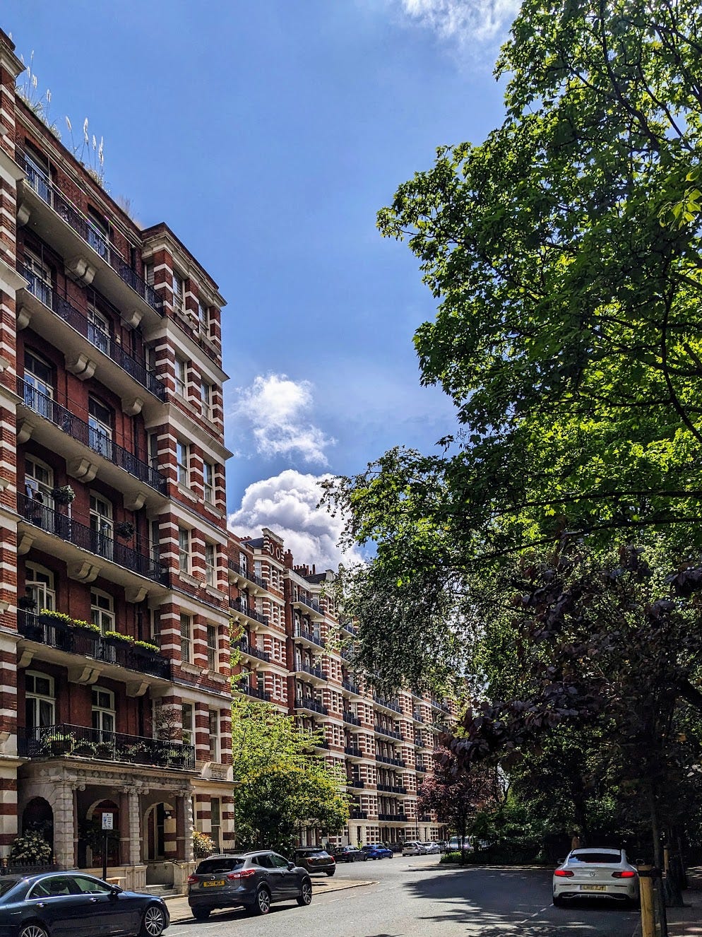 People often ask why we no longer usually build such attractive vernacular buildings today. This is a question of great difficulty, and I do not think I know the whole answer (though I have written about it here and here). But the Victoria mansion blocks do illustrate one reason, namely that some features of traditional urban form tend to contradict modern approaches to town planning. In 2017 the little-known think tank London First published an excellent report showing how the daylight and sunlight guidance of the Building Research Establishment (BRE) would require the removal of more than half of the floorspace of Carlisle Place, the next street along from the Cathedral. The BRE compassionately wishes to protect people from living in gloomy slums, but given that people are prepared to pay over £1,000 for each square foot of Carlisle Place floorspace, one rather thinks this compassion has been misplaced.