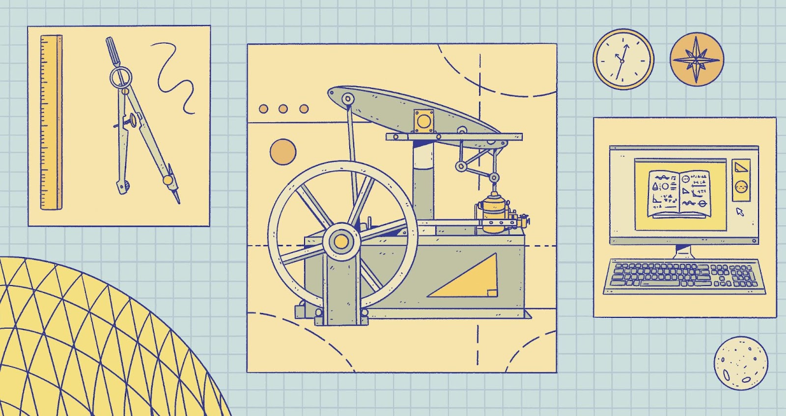 Our lead piece tells the story of how mathematics helped to make the modern world. Geometry gave us perspective in painting and drawing. Algebra gave us triangulation and measurements of the world. And the mathematic mentality also gave us industrial machinery – steam engines, trains, machine tools, and factories.