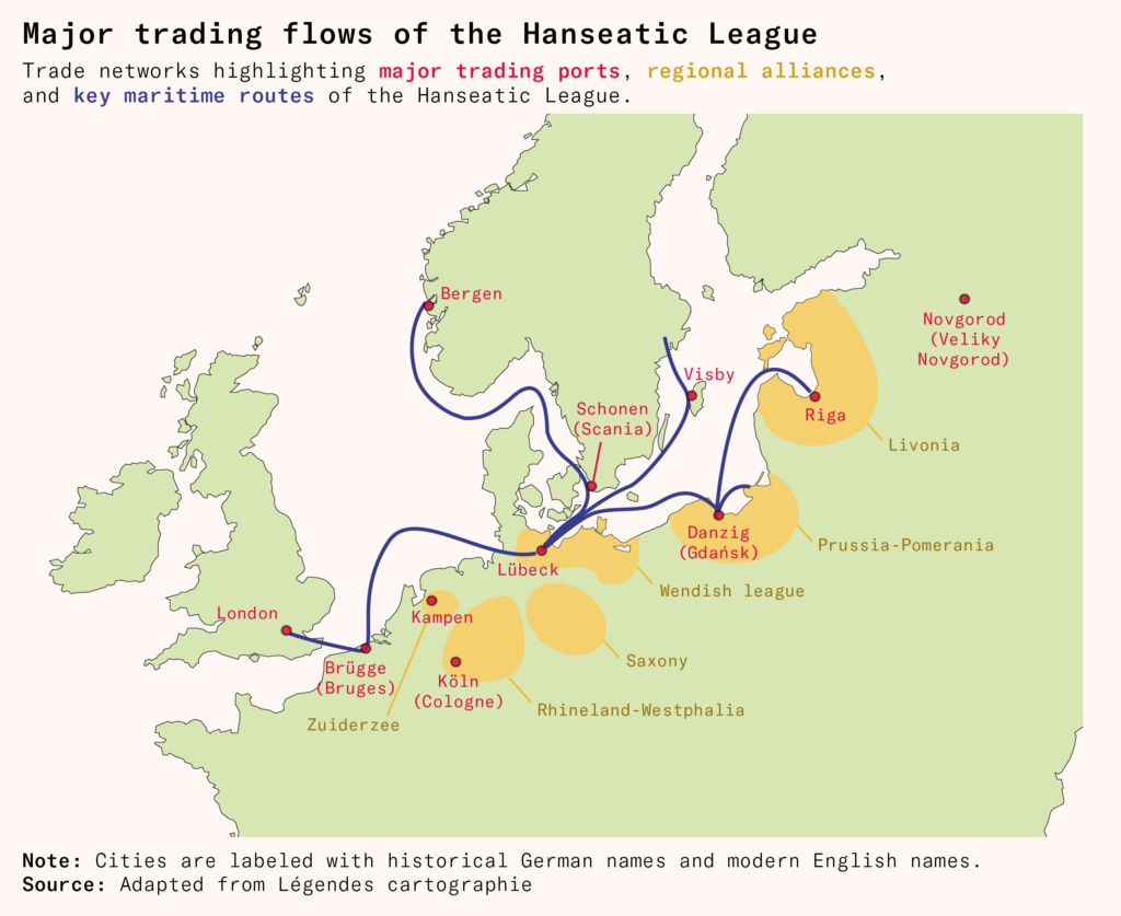 The rise and fall of the Hanseatic League by Agree Ahmed. This is a cool piece for two reasons. One, this late medieval / early modern period of European history is absolutely fascinating, and the story of the Hansa is in many ways the key economic and technological history story of Northern Europe in that period. Bigger boats allowed merchants to meet new demand for wool driven by the invention of the horizontal loom, which tripled a weaver’s output, and bring Swedish freeze-dried fish to feed towns that were beginning to deplete their own fish stocks (fish accounted for 10-20 percent of food spending at this time). The Hansa only really declined after the Dutch developed technologies that outdid them. Two, it’s a history of successful coalition building and maintenance, reliant on mutual favors and reputation more than force, which interests me well beyond this historical case.