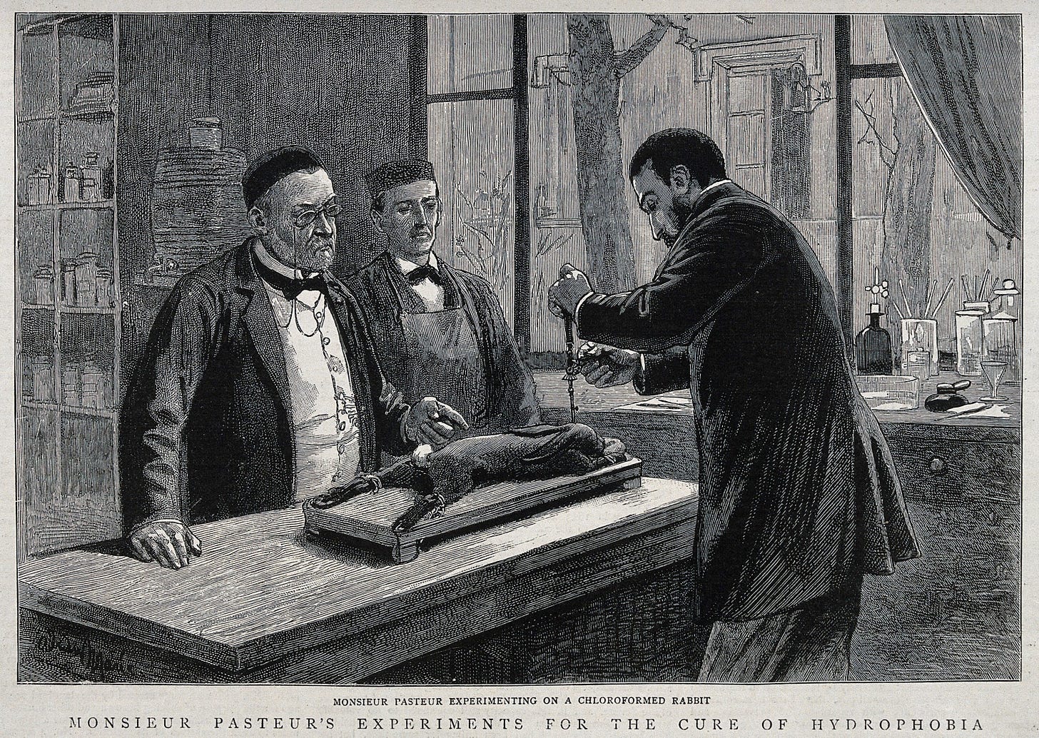 After hundreds of experiments, they finally developed a vaccine. Roux extracted brain tissue from a rabid dog and injected it into the brains of rabbits after drilling a small hole into their skulls. He then passaged the material from rabbit to rabbit this way, eventually going through 90 rabbits in a row. Finally, he dried the tissues in closed flasks to weaken the pathogen and injected the material into dogs, gradually exposing them to higher and higher doses, helping them build up protection.