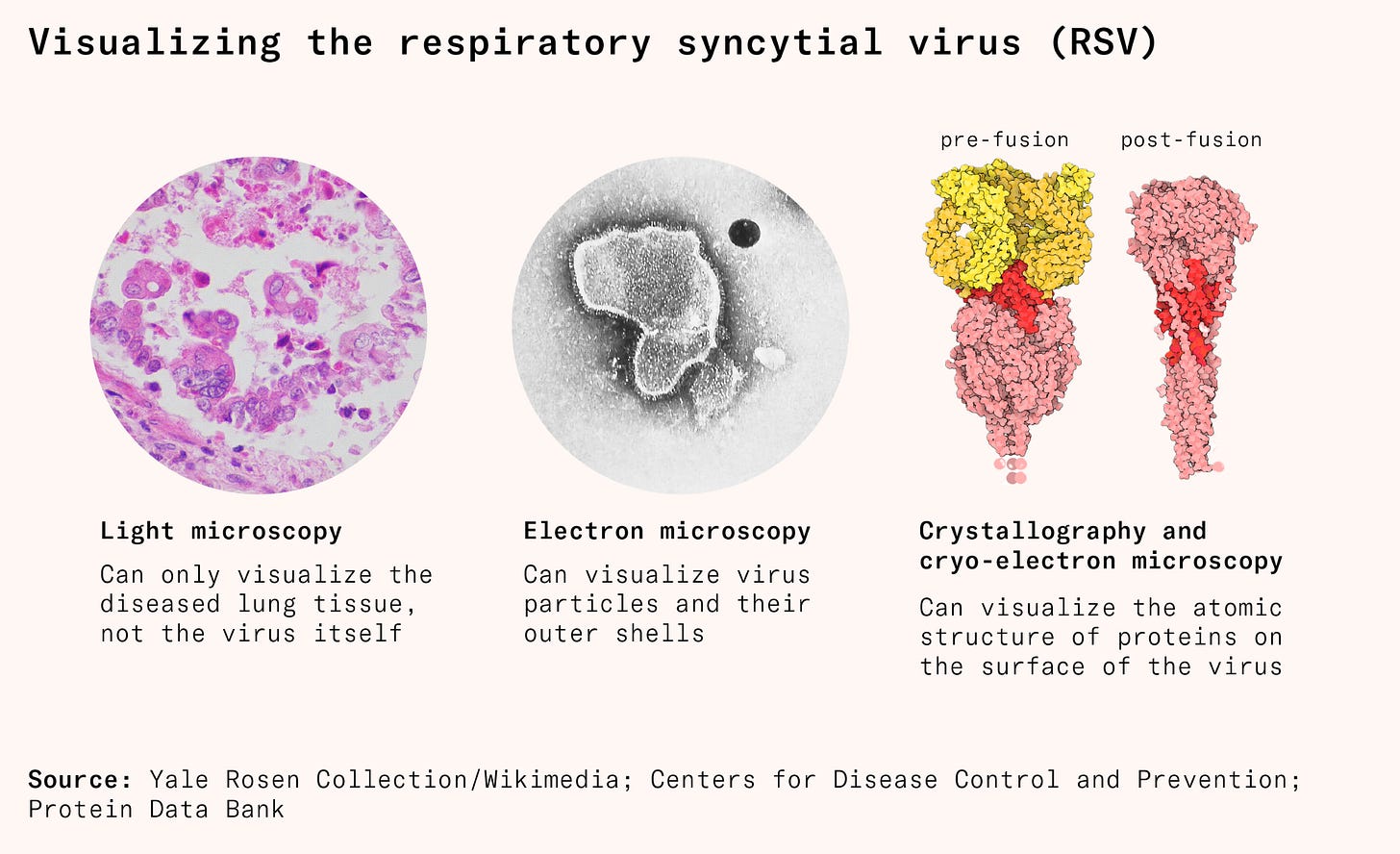 The RSV vaccine was also part of a major shift in vaccine technology: it was not the whole virus but an individual protein. Until the mid-twentieth century, the vast majority of vaccines had been made from whole pathogens. Making precise vaccines, containing only a few key ingredients, would improve their safety and widen their breadth.