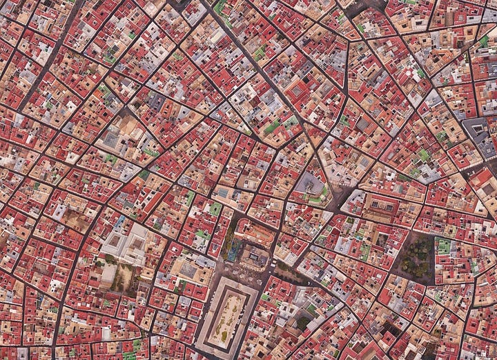 This pattern is still obvious today in those old cities that have remained relatively undisturbed. Examples of this can be found in the historic urban fabric in Cadiz and Kyoto, ancient cities at opposite ends of Eurasia. Both have the narrow streets and densely packed blocks that characterized premodern cities across the continents that lay between them.