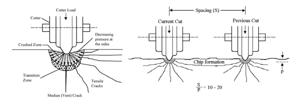Attempts to build rock-tunneling machines date back to the 1850s, but the first successes appeared in the 1950s, when James Robbins developed the disc cutter for the Oahe Dam project. Prior to this, most attempts at mechanical rock-tunneling machines used drag picks, sharp steel tools that scraped away bits of rock as the cutting head rotated. Robbins’s disc cutter, on the other hand, rolled freely over the surface of the rock like a wheel. As the tunneling machine pressed the disc cutter against the face of the rock, the rock cracked and flaked off.